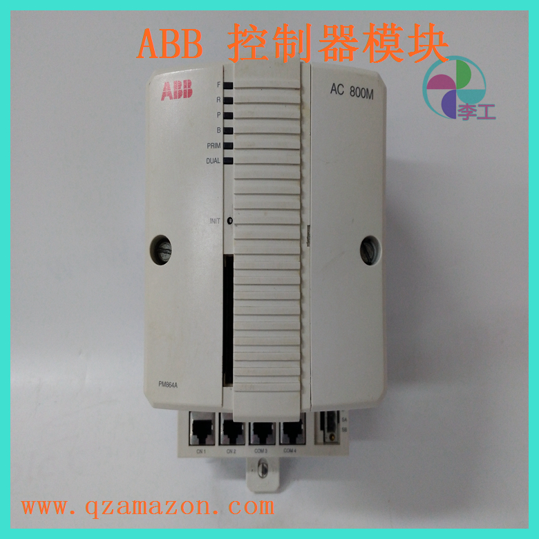 PM866/PM866A 控制器的底板上有两个用于连接控制网络的 RJ45 以太网端口(CN1、CN2)和两个 RJ45 串行端口(COM3、COM4)。其中一个串行端口(COM3)是带有调制解调器控制信号的 RS-232C 端口,而另一个端口(COM4)是隔离的,用于连接配置工具。控制器支持 CPU 冗余以提高可用性(CPU、CEX-Bus、通信接口和 S800 I/O)。